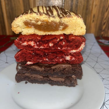 Prueba nuestras NY cookies: Chispas con relleno de chocolate. Oreo rellena de crema Oreo. Chispas rellenas de dulce de leche. Red Velvet con frosting de queso crema. Cheesecake de furtos rojos.